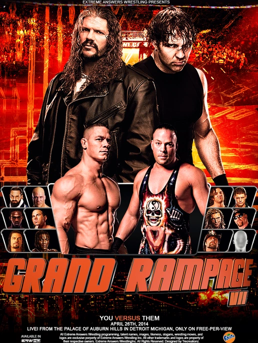 As it is an annual tradition, the 30-Man Grand Rampage match headlines each Grand Rampage event. 30 Extremists compete with numbers 1, 5, 10, 15, 20, 25, and 30 entering with custom weapons to add to the extreme environment. Many known Extremists qualified and guaranteed they were going to win it. The House of Renegades (Hades The Hellraiser, Nick Angel, and Venom) qualified at the cost of Hades and Nick being stripped of their EAW Unified Tag Team Championships.
