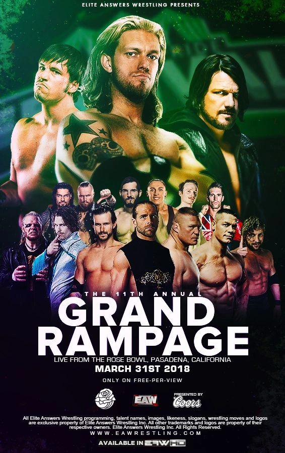 EAW Grand Rampage (2018) was professional wrestling pay-per-view (PPV) and EAW Network event produced by EAW featuring wrestlers from the Showdown, Voltage, Dynasty, and Empire brands. It took place at the Rose Bowl in Pasadena, California on March 31, 2018. It was the eleventh event under the Grand Rampage chronology.