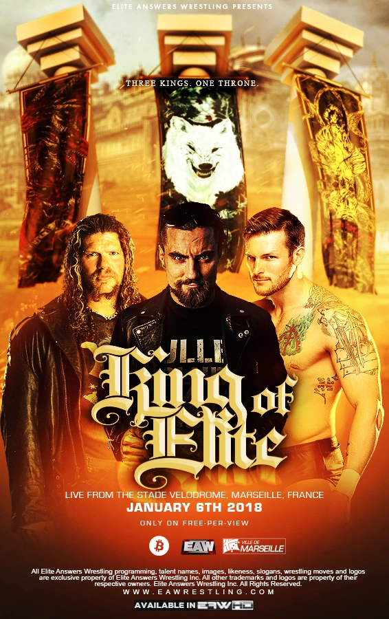 EAW King of Elite (2018) was a professional wrestling event that was scheduled to take place at the Stade Velodrome in Marseille, France on January 6, 2018. The event was be produced by Elite Answers Wrestling and featured elitists from all four of the company's brands.