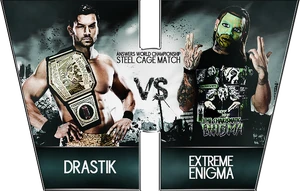 - 7. In the final moments of the match, Extreme Enigma almost reaches the top of the cage and almost climb the other side of the cage but decided not to. EE then stands at the top of the cage as he looks down at Drastik and looks into the crowd. EE out of freaking nowhere hit the Fall From Grace from the top of the cage and landed on Drastik. EE then barely to moves but raises his arm and lays it across the chest of Drastik as he gets the cover and the 3. After the match, Extreme Enigma puts the Answers World Championship around his neck as he continues to celebrate at the top of the stage