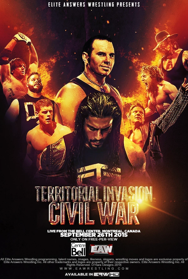 Territorial Invasion: Civil War featured professional wrestling matches with varying storylines from the brands of Elite Answers Wrestling with the elitists of its respective brands: Showdown, Dynasty, and Voltage.