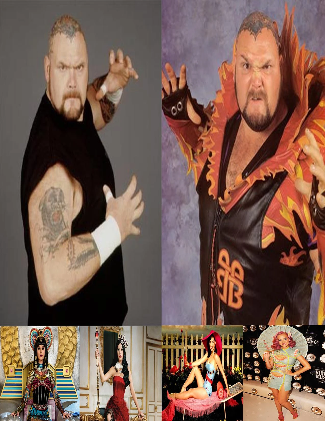 Jaspora and Gunkai were orphans in a poor district of Nepal who grew up needing to fight and steal to scavenge food and survive. With their natural talents, Gunkai's massive strength and surprising athleticism to with his size and Jaspora's beauty to hide her great intellect and wicked nature, they became leaders of their own network of criminals.Their reputation grew until Gunkai was known as a mountain of flesh and bone while Jaspora was known as a cruel witch due to her control over Gunkai and tendency to dress in dark purple mysterious dresses while bossing around everyone around her. Eventually moving to American to foster immigrants and make money in the world, Jaspora and Gunkai found themselves digging their claws into professional wrestling. Gunkai was the first to make his name known to the world when he became a soldier in Scott Diamond's Ironfist threatening EAW. an act Jaspora didn't support due to not trusting Scott Diamond who Gunkai obeyed simply for the money while ignoring Jaspora's wishes. The thing with the Moving Mountain Gunkai is while Jaspora favours intricate ideals of obtaining power and mastery of the business for herself and Gunkai, other than his loyalty to Jaspora, all he cares for are for what he considers the greatest things in life, violence, alcohol, sex and money, so he was fine with joining the Ironfist for the coin alone.